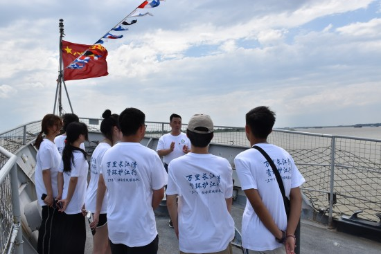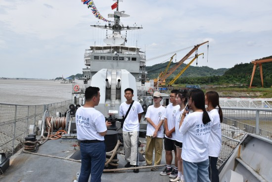 走进位于九江市湖口县的九江舰爱国主义教育基地,在老师的引导下,我们登上了威武的九江舰参观。在舰上全体党员和入党积极分子有序参观了前主炮监控室、驾驶舱、会议室、主机超控室等,近距离感受当年九江舰官兵战士执行任务的环境和人民海军的光荣历史,学习人民海军光荣传统和优良作风,以及维护国家海权的意志品质,感受我国海军的改革发展历程和实力的快速增强。
