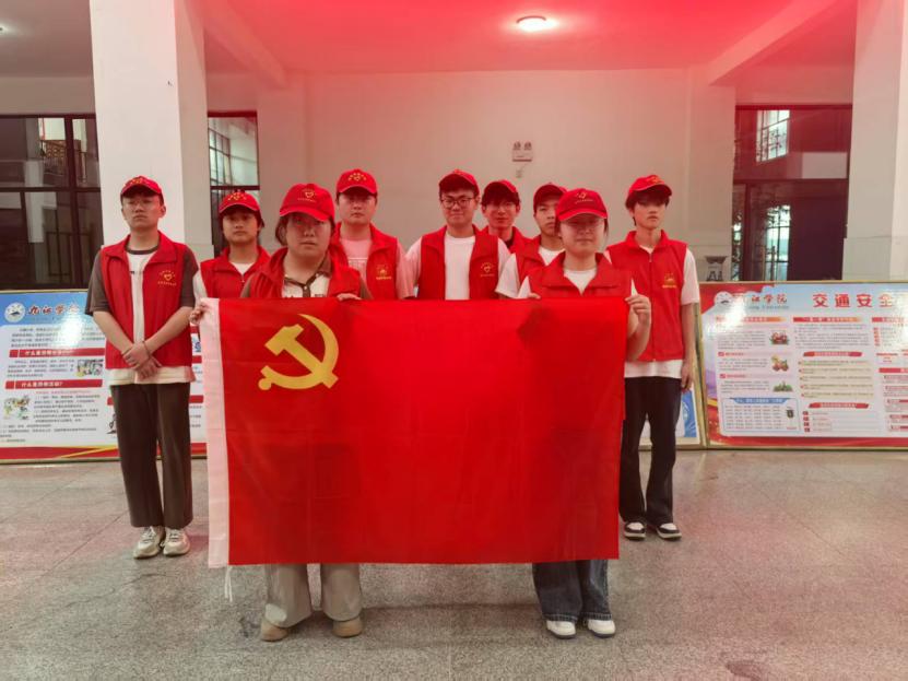 活动当日,入党积极分子们满怀热忱,早早地在香远楼一楼大厅集结完毕。他们身着整齐划一的志愿服,领取宣讲资料与展示道具,随后,大家面带笑容,在镜头前留下充满朝气的合影,定格这意义非凡的瞬间。