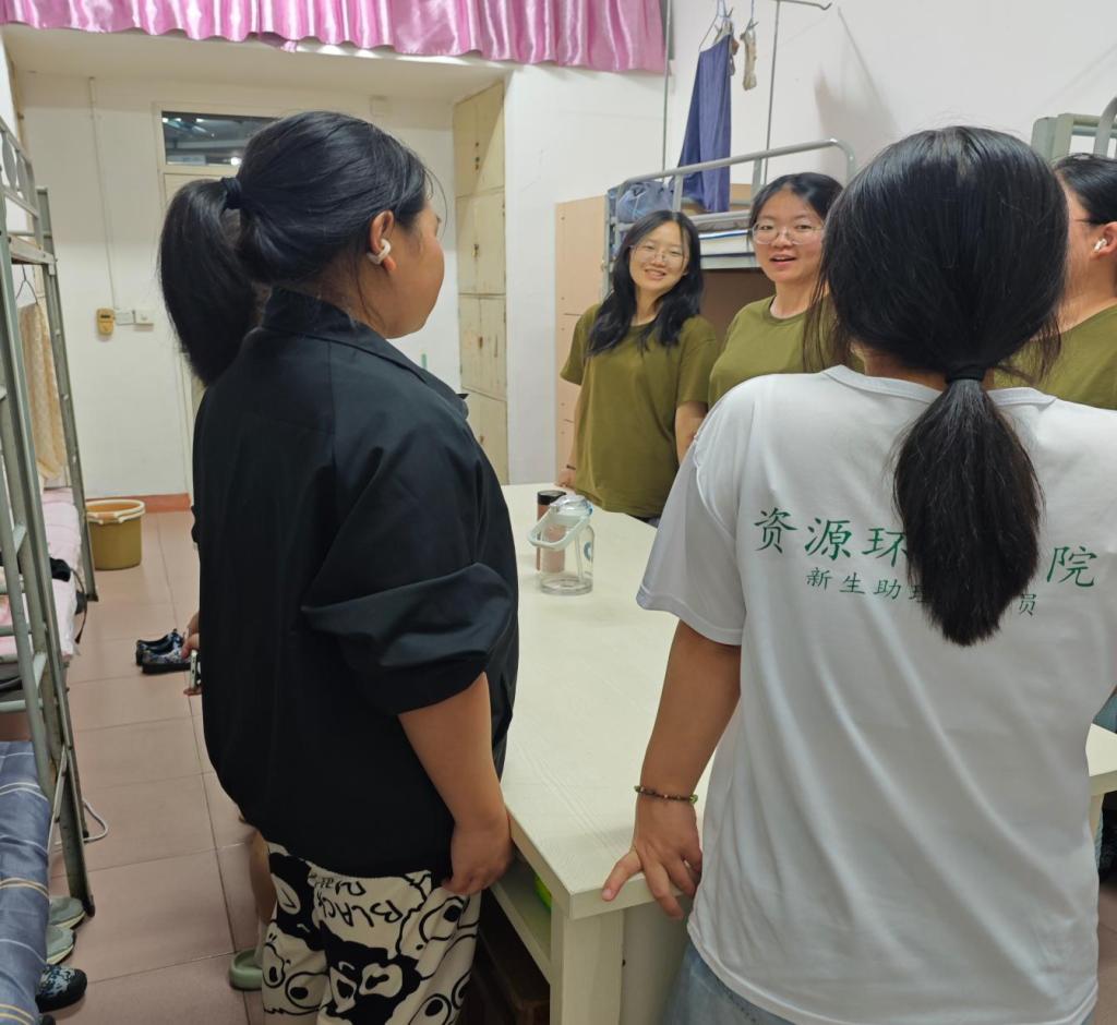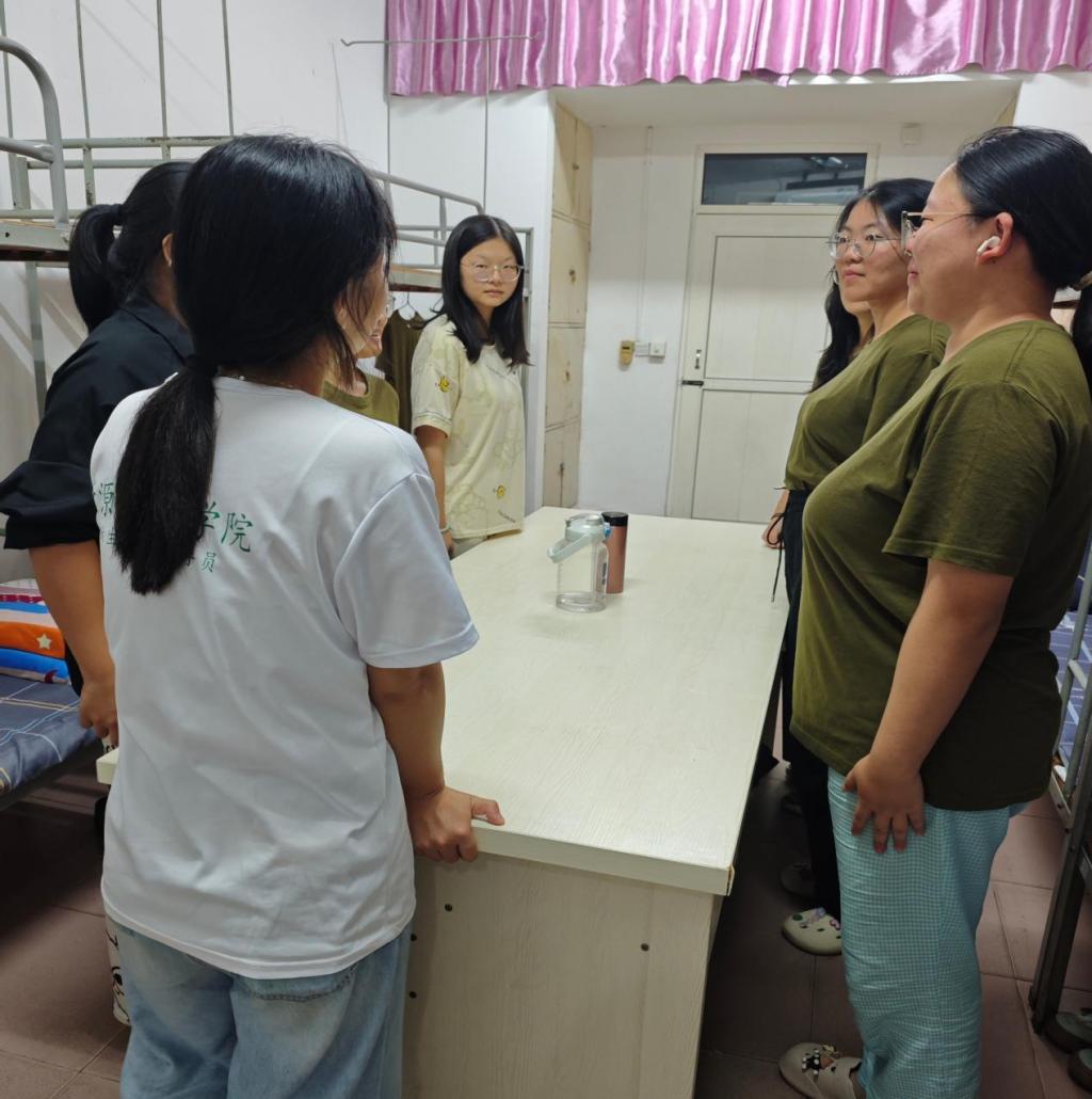 学生党员们深入2025级新生宿舍,不仅现场示范寝室内务整理规范,详细讲解评分标准,还亲手帮助新生整理床铺、收纳物品。活动中,党员们与新生围坐交流,耐心解答关于课程学习、社团活动、校园生活等方面的疑问,贴心地为新生准备了校园生活指南手册。