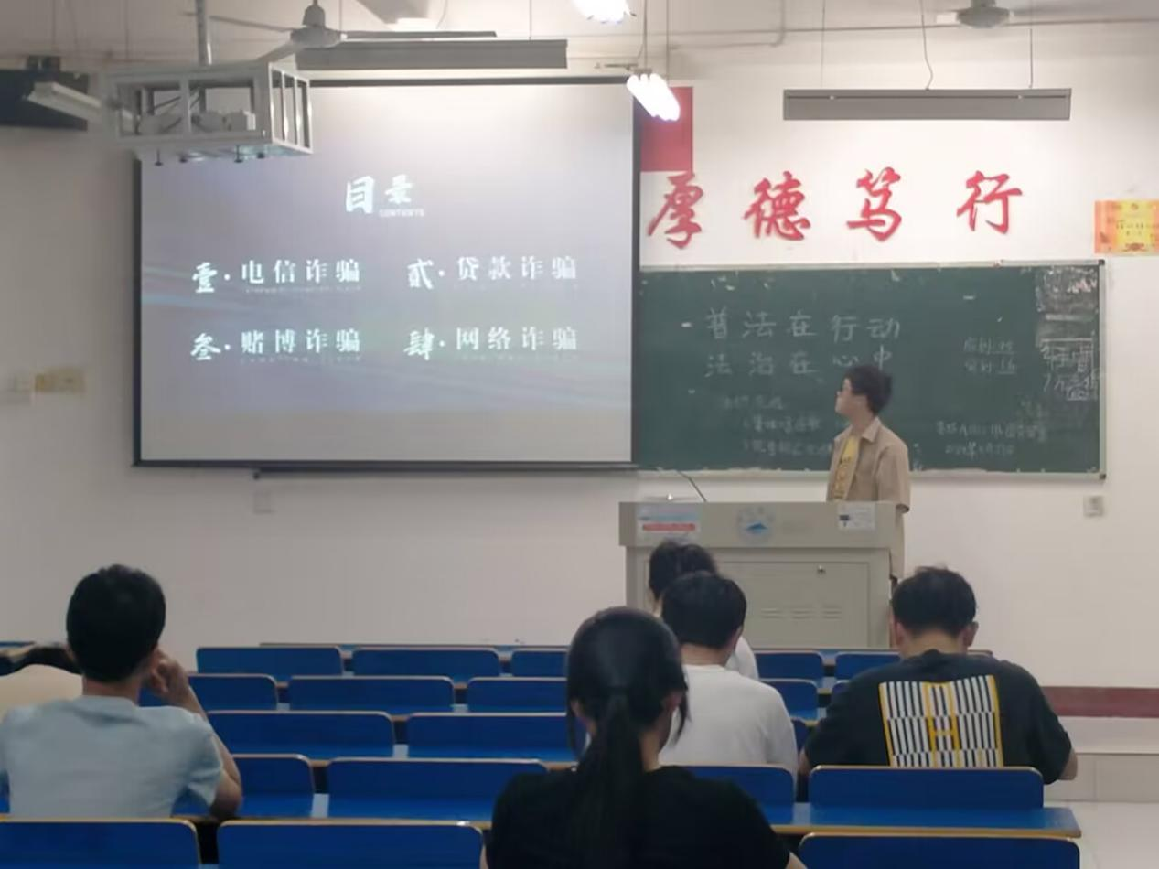 在主题班会中,各班讲解员通过PPT讲解、展示视频资料等方式,生动形象地向同学们讲解了“帮信罪”的定义、构成要素、常见类型、事件危害、防范措施等方面的知识。