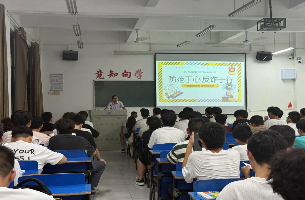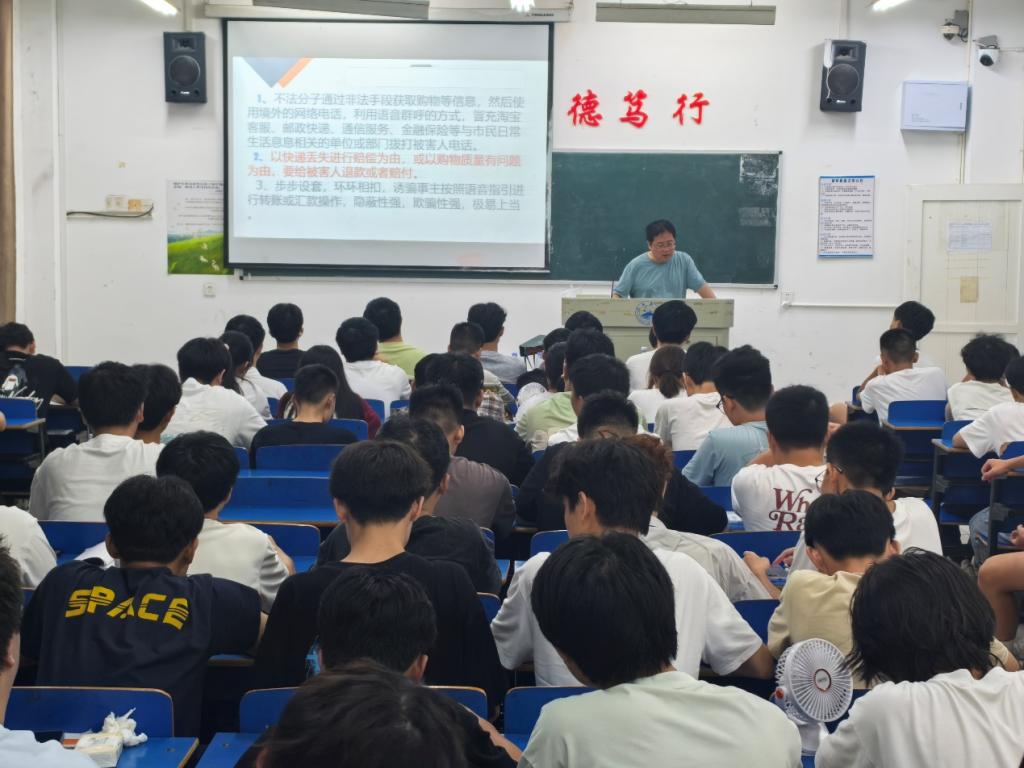 为切实提升学生识别和防范电信网络诈骗的能力,william威廉中文于近日组织大一各班级开展反诈骗专题课堂,由思政科科长肖国光、学生科科长过七根、学生科辅导员王勇和郑锋担任主讲,为学生带来一堂生动且实用的防骗知识课。