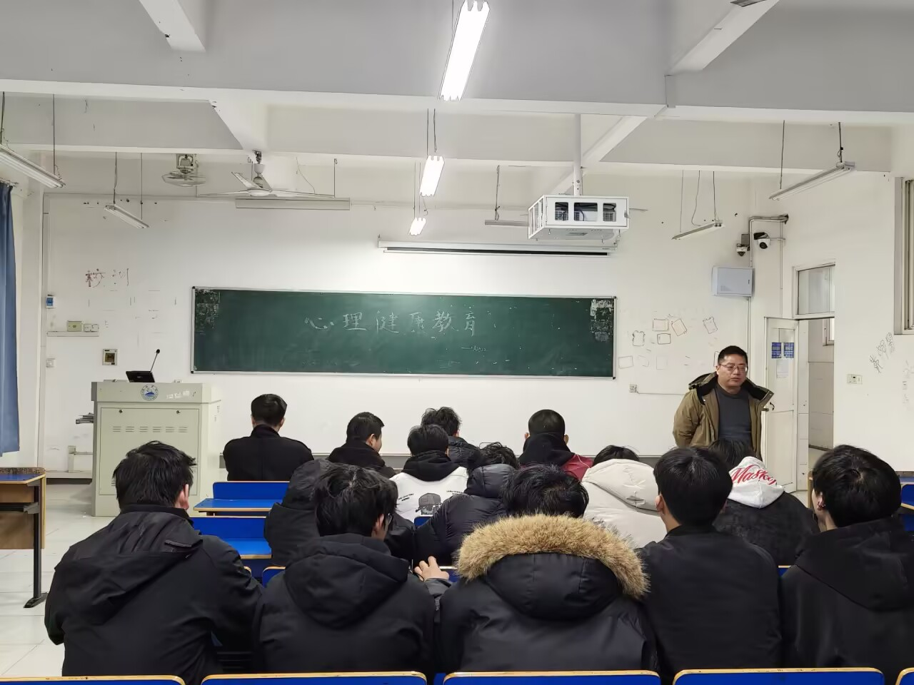 班会现场,各班主任围绕情绪管理、人际相处、学业压力调适、生命安全与心理求助等核心内容,结合大学生常见心理困扰与典型案例,用通俗易懂的语言讲解心理健康知识。班主任们耐心倾听学生心声,细致解答疑问,引导同学们正确认识负面情绪、学会科学自我调节,同时普及学校心理咨询渠道与求助方式,破除对心理求助的误区,鼓励大家主动沟通、积极求助。