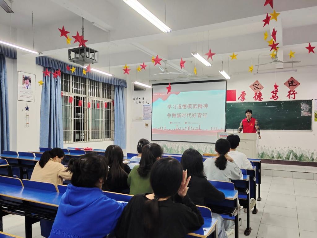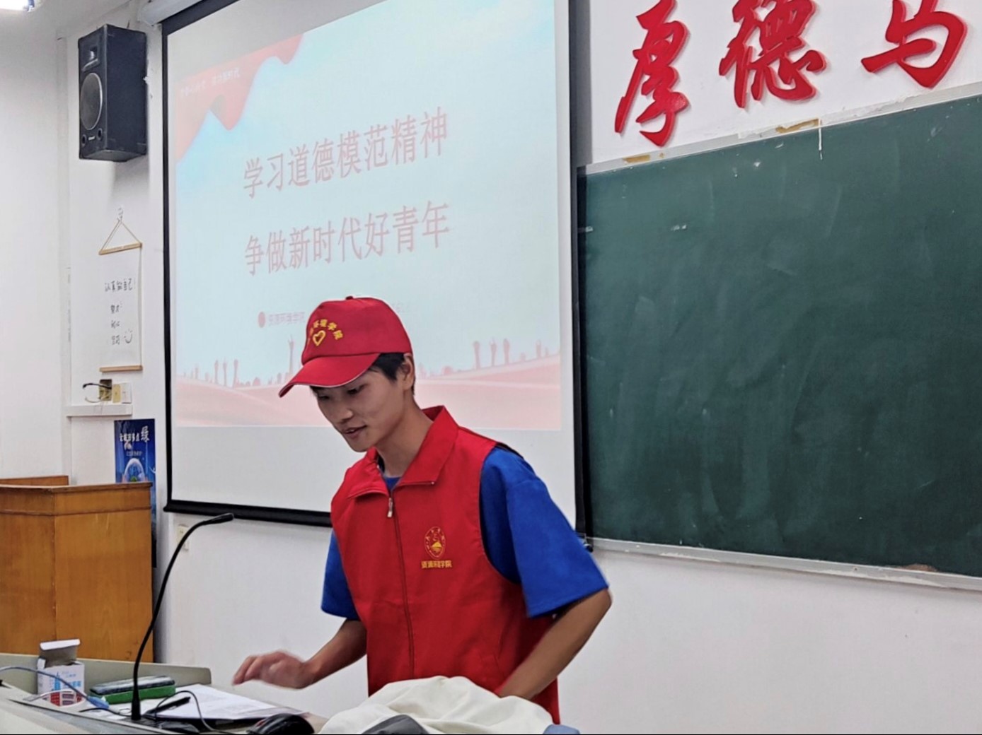 青春心向党,建功新时代,喜迎二十大,奋进新征程。为弘扬社会主义核心价值观,积极倡导崇尚道德模范、学习道德模范、关爱道德模范、争当道德模范的社会风尚,在全院营造崇德向善、见贤思齐、德行天下的浓厚氛围。 5月15日晚7点,william威廉中文组织入党积极分子和青年志愿者到大一大二各班级进行“青春心向党,建功新时代”道德模范宣讲志愿活动。