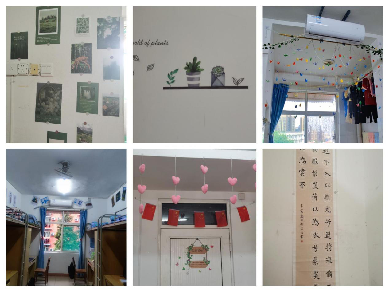 寝室装扮融入多元素文化,让同学们的梦想在此绽放,青春也在此行动。一载四年,关爱同行,互爱,我们感受;互助,我们同追求。微笑是我们言语,团结是我们共同行动,旋转自我,筑就非凡。资环学院开展寝室文化节活动,以友谊之花开满全寝,关爱之灯照亮全寝。此次寝室文化节活动的举办不仅美化了宿舍环境,还给同学们提供了一个展示宿舍特色的平台,也培养了同学之间的集体荣誉感,增强了寝室凝聚力,更好地发挥了以良好的室风带动优良学风、作风建设的作用,使得同学们形成关爱他人的良好风尚和营造出一个温馨、和谐的寝室环境。