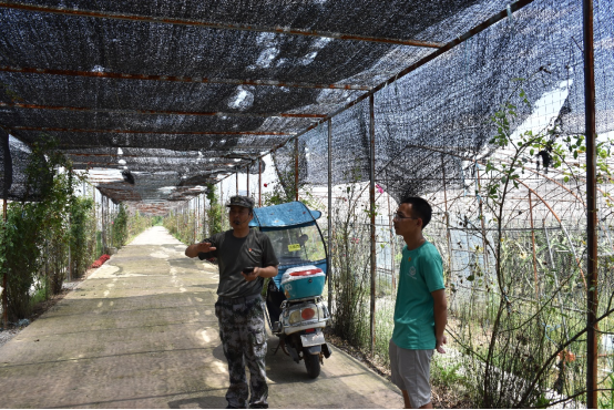 在产业园中有彭湾村退休老书记邓见亮为我们进行解说。在邓书记的耐心解说中我们了解到产业园自建立以来已初步形成了集种植、养殖、休闲、观光、采摘为一体的大型循环农业产业链。该产业园利用赤湖水资源和周边生态环境着力改造500亩荷花种植基地,以旅游业带动乡村经济发展。同时彭湾村着力打造产业扶贫基地,已成立九江通达蔬菜种植专业合作社、大棚西瓜合作社、红心火龙果产业园等产业基地,共流转土地200亩。目前以种植大户为首,带动彭湾村38户贫困户增收,加快乡村脱贫步伐。