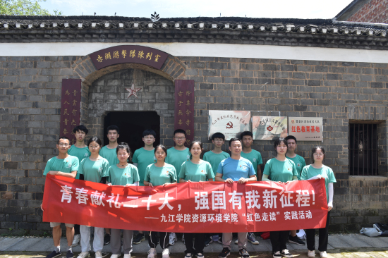 近日,资源环境学院青年大学生“两山”暑期社会实践服务队来到学院社会实践活动基地柴桑区城子镇彭湾村,依托当地红色文化,开展“青春献礼二十大,强国有我新征程”为主题的“红色走读”实践活动。
