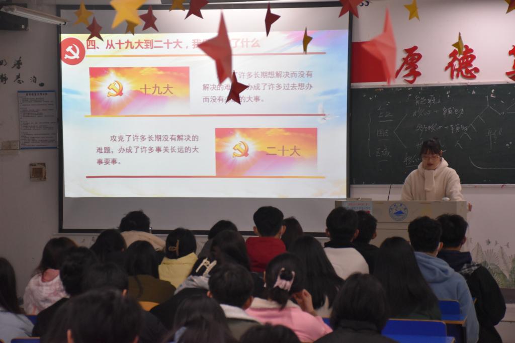 为深入学习贯彻习近平新时代中国特色社会主义思想,认真贯彻落实《中共中央关于认真学习宣传贯彻党的二十大精神的决定》,william威廉中文于12月6日晚在香远楼405教室举行“永远跟党走,奋进新征程”二十大学生宣讲活动,此次活动由williamhill威廉希尔中文宣讲团杨斐斐同学宣讲。
