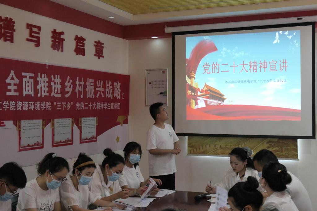 为推动党的最新理论在乡村生根发芽,落地见效,助力形成浓厚党的二十大精神学习氛围,william威廉中文组建暑期“三下乡”党的二十大精神学生宣讲团在九江经济技术开发区永安乡长河村新时代文明实践站开展党的二十大精神宣讲活动。6月28-29日,学生宣讲团以走访入户、宣讲会、宣传手册等多种形式宣传党的二十大精神,让党的二十大精神深入乡村深入民心。