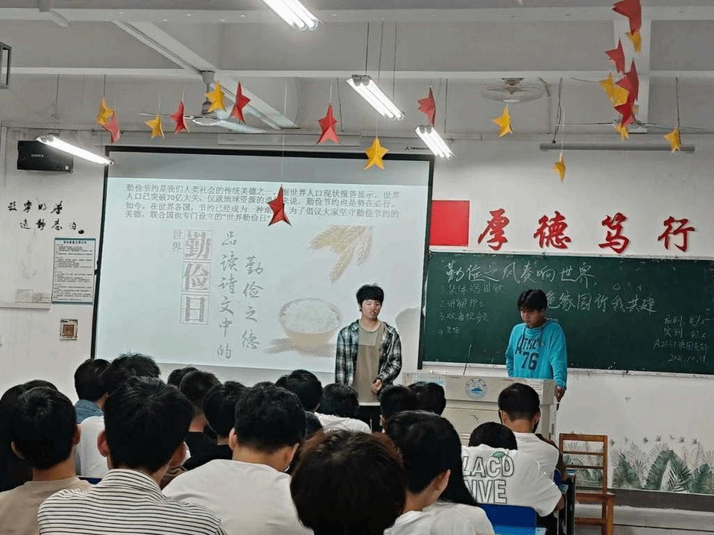 . 本次团日活动伴随着同学们的歌声娓娓展开,各主讲人借助PPT或面对大自然详细讲解了有关世界勤俭日的相关内容,其由来及背景,同时为大家介绍了有关粮食的小故事和重要人物贡献。在此期间,不仅使珍惜粮食这一意识深入人心,更使得他们对世界粮食日有了更加深刻的理解。最后,在有关勤俭的倡议中结束了这次的团日活动。