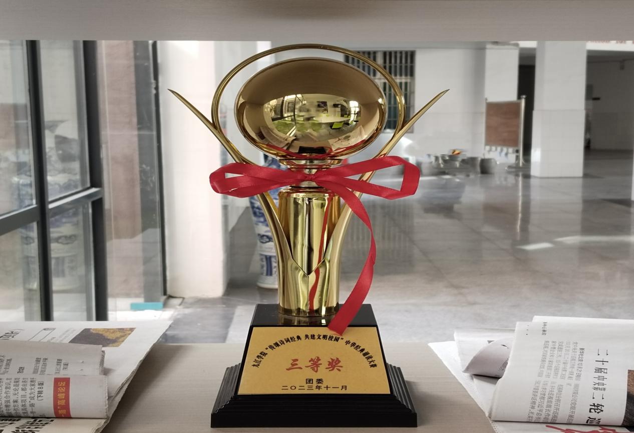 11月16日晚七点在南门大礼堂举办的中华经典诵读大赛决赛落下帷幕,我院学子选目《桃花源记》以9.59分高分荣获三等奖,取得喜人成绩!站在决赛的舞台上,同学们的朗诵节奏明快,声情并茂;诵读表演不拘一格,极富艺术感染力和吸引力,处处体现创新特色与学院精神内涵;演员们精神饱满,衣着贴合角色,情意表达恰到好处,赢得在场观众热烈掌声与欢呼,使这场盛会成为经典,夺得了属于资环的奖杯。