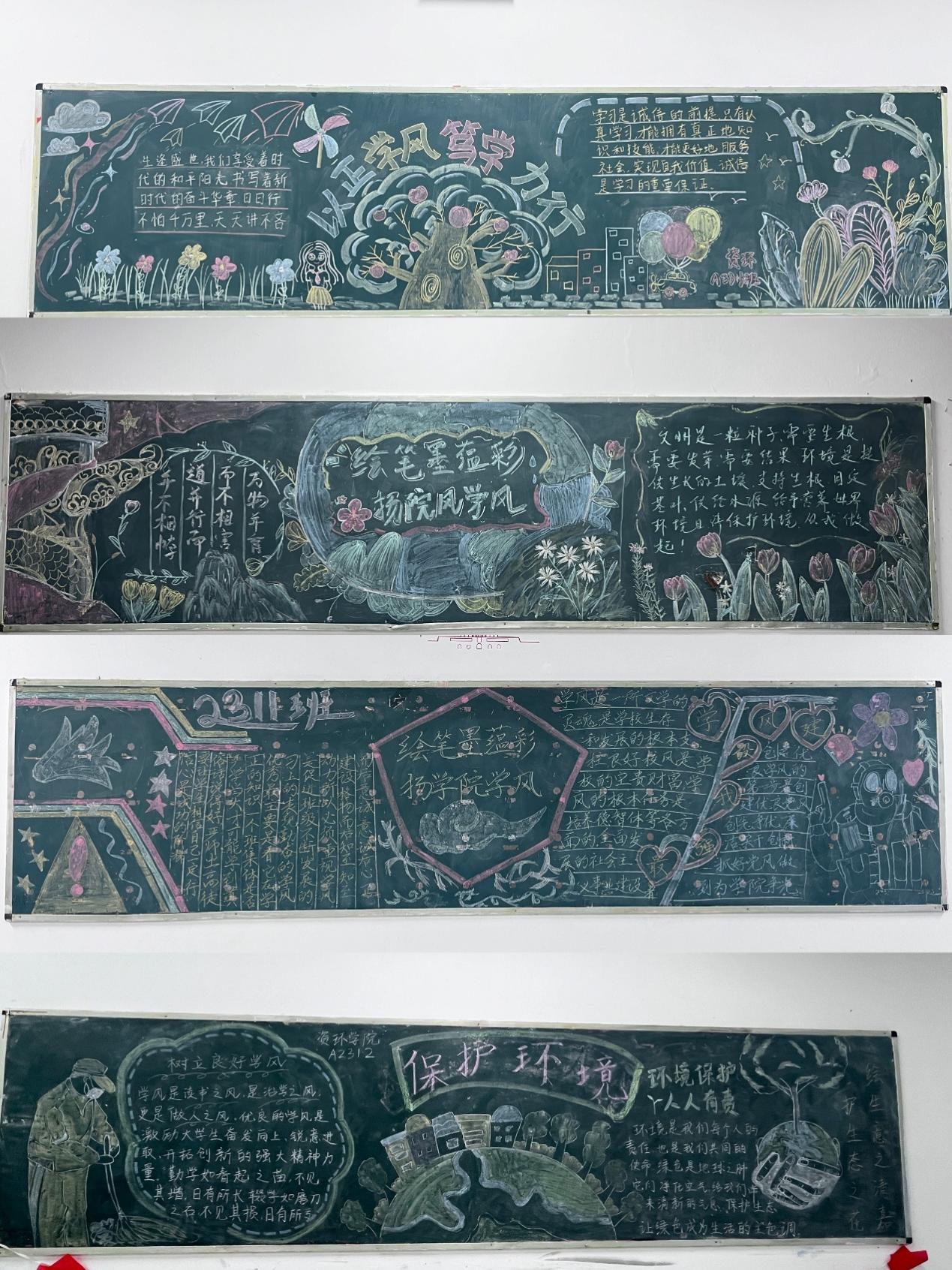 学风建设是校院风建设的重要内容,是全面推进素质教育,为社会培养高素质人才的关键。优良的学风是保证提高教育教学质量的重要条件。此次黑板报活动紧扣“绘笔墨蕴彩,扬学院风帆”,借助色彩、文字、图案等元素,制作出了一幅幅主题鲜明、内涵丰富的黑板报作品。