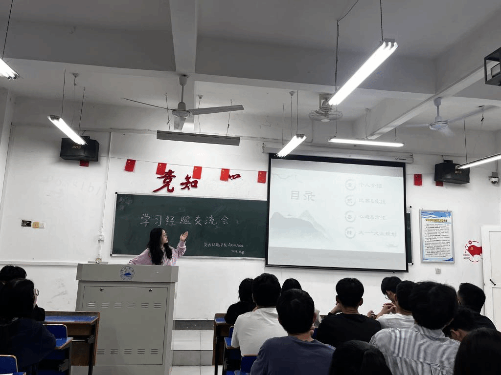 本次活动邀请获得过国家励志奖学金的大三学姐刘旖曦来大一大二各班巡回演讲,学习交流,以先进典型引领学风,强化榜样示范。为学生开展学习责任、专业认同、生涯规划指导等方面专题授课,激发青年学生爱国荣校意识,大力弘扬科学和人文精神,提升学生学习内生动力。