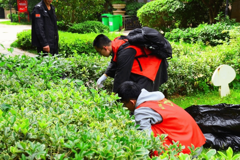在活动现场,大学生志愿者与九针社区干部、小区业主委员会人员一起,对楼栋架空层的车辆进行整理,清理绿化带的藤条、枯枝落叶和小区路面上的垃圾;倡议居民爱护小区环境,争做文明市民,共建美丽家园。经过大家的共同努力,社区环境焕然一新。大家以实际行动践行了全心全意为人民服务的宗旨,传递了“奉献、友爱、互助、进步”的志愿服务精神。