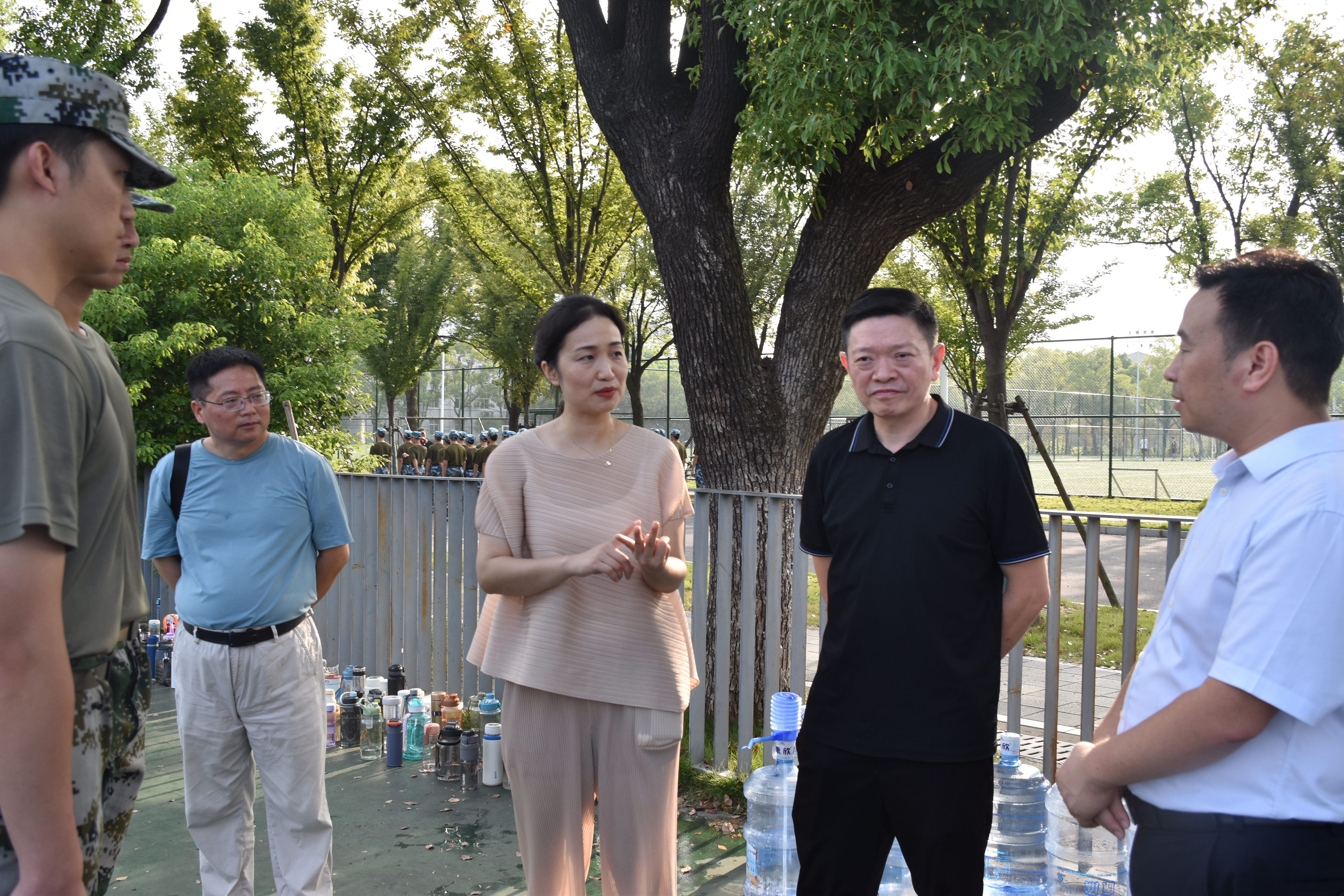 凌云少年着戎装,扬帆“资环”启新章。为切实加强国防教育,厚植爱国情怀,锤炼学生意志,给军训新生加油打气,2024年9月14日下午,william威廉中文党委书记徐常龙,副书记翟佩佩,思政科科长肖国光,学生科科长龚双双莅临北区篮球场看望2024级军训新生。