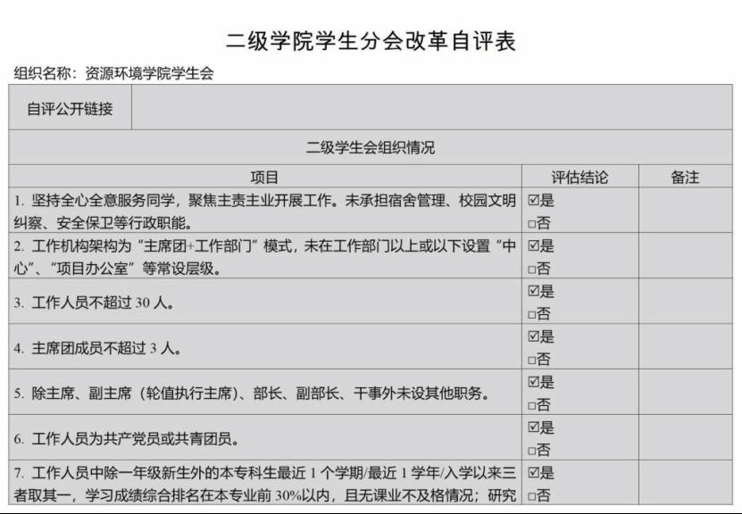 根据上级文件指示,对学生会工作进行规范和改革。严格落实“学生代表大会制度”,组织架构上对部门数量进行整合,对学院主席团和学生会人数及身份进行了严格规范及审查,对学生会工作进行“去中心化”和“去行政化”改革。