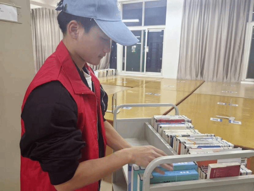 在本次图书馆志愿活动中,志愿者们分工明确,有的用小推车将书籍搬运到指定位置;有的仔细地将归还的书籍按编号分类依次摆放到书架上,一本本书籍通过志愿者们的付出回到了它们的‘家’;还有的志愿者他们排成一排,一个接一个传递书籍到指定位置。通过志愿者们的辛苦工作,图书馆更加整洁有序,图书馆工作人员也可以更高效地进行管理。