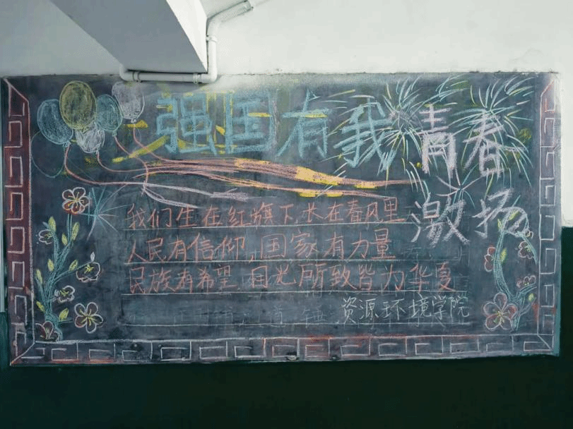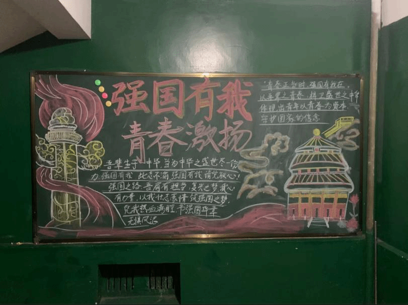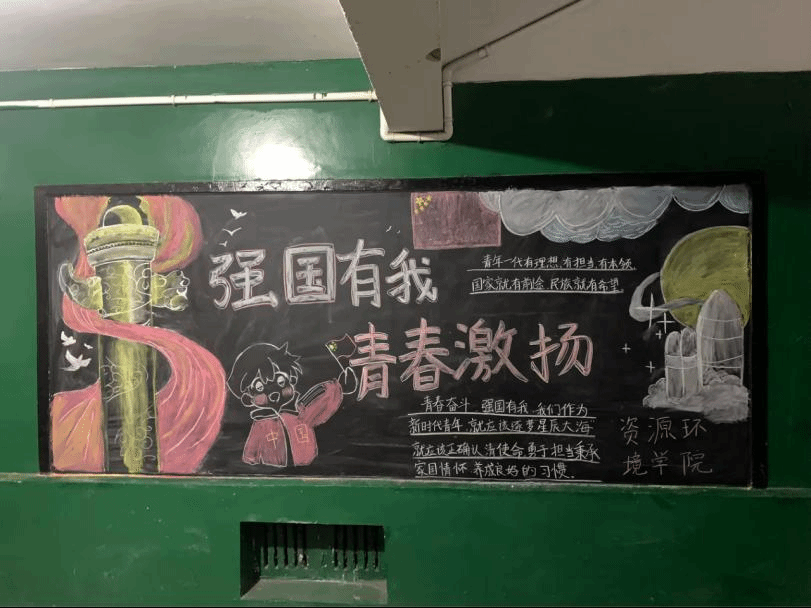 活动期间,各楼栋的黑板报以生动的图文展现,围绕主题,突出国家发展成就和青春活力。参与者们通过精美的画作、激昂的文字,字里行间都在呼吁同学们携手共进,为建设强大祖国贡献青春力量,展示了强烈的爱国情感和昂扬的青春风貌。