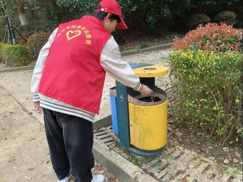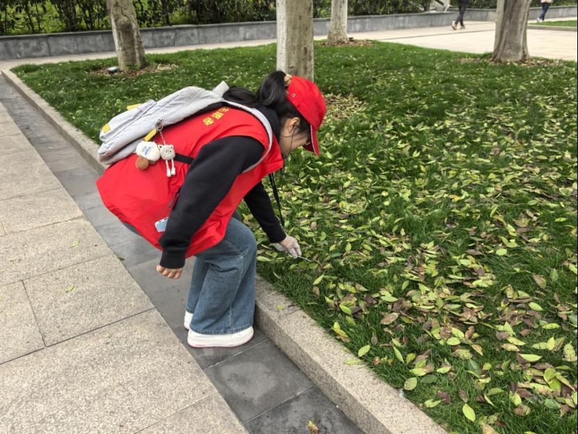 活动中,志愿者们分工协作,细致清理草丛中隐匿的烟蒂、塑料瓶、食品包装等垃圾,并对游客进行环保宣传,倡导“随手带走垃圾,留下文明风景”。春日的南山公园里,一抹抹“志愿红”与青山碧水交相辉映,成为最动人的风景线。