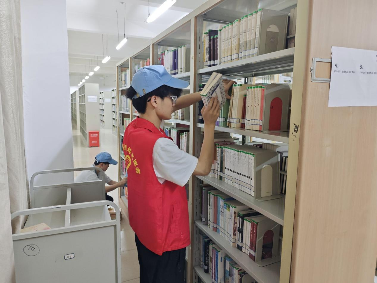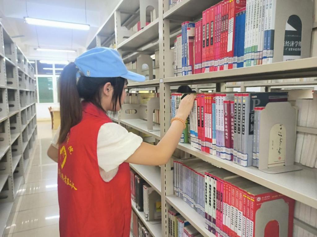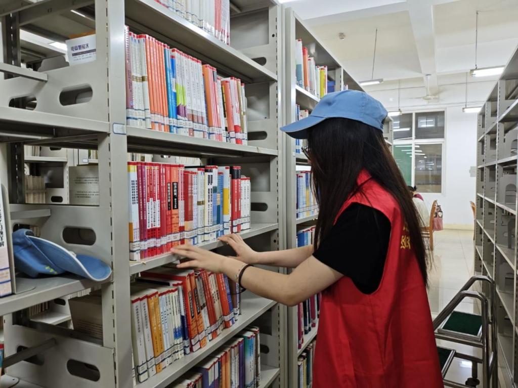 面对杂乱的待整理区域,志愿者们默契配合,有的细致分类,有的快速检索书号,有的小心翼翼将书籍插入对应书架。指尖在书脊上游走,沙沙的翻书声与轻柔的挪动声交织,如同奏响一曲知识归位的韵律。在他们的努力下,原本零散无序的书籍变得整齐划一,每一列书架都焕发出崭新的秩序感。书架间,志愿者们穿梭的身影成为独特风景。
