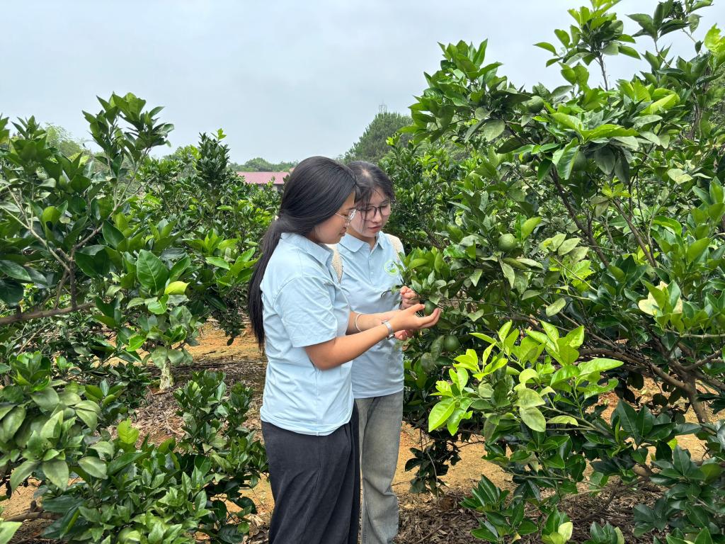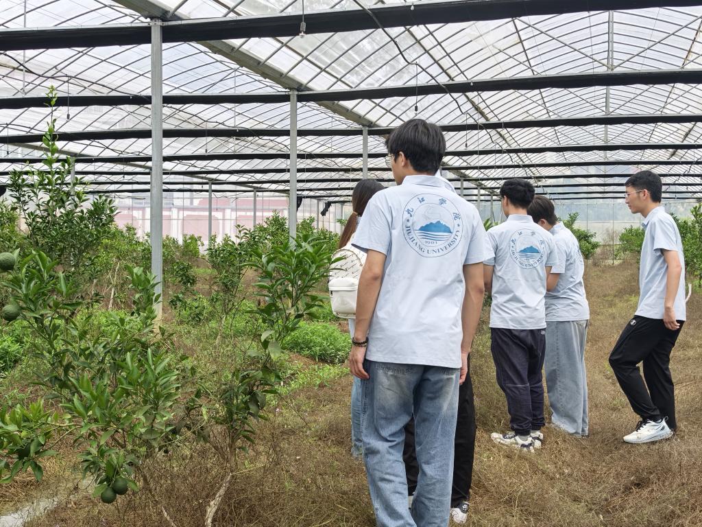 实践队奔赴庐山西海幸福百果园等地,深入柑橘、桃树种植区域。在温室大棚与露天果园,队员们实地查看果蔬生长情况,与种植户交流,了解品种选育、栽培管理、市场销售等环节。从果树日常养护到病虫害防治,从采摘周期到产销对接,队员们细致调研,挖掘产业发展亮点与痛点,积累一手资料。