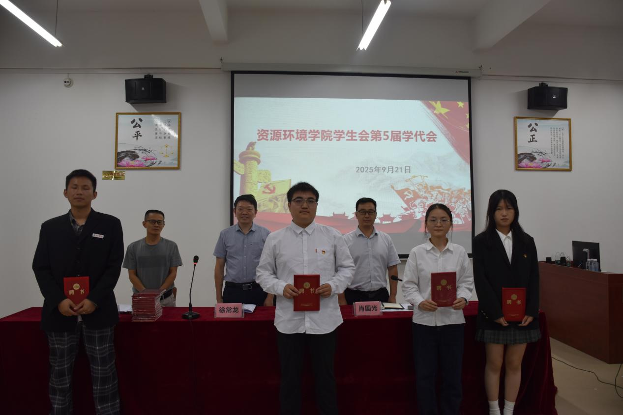 工作汇报结束后,徐常龙,肖国光,过七根为主席团及团副颁发聘书,并为学生会各部门负责人颁发聘书。