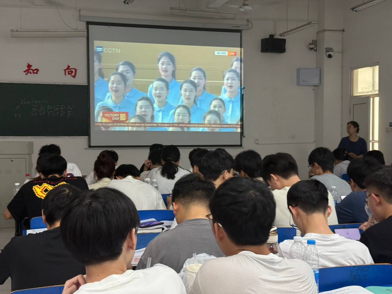 9月3日,纪念中国人民抗日战争暨世界反法西斯战争胜利80周年大会在北京天安门广场隆重举行。为纪念这一重要历史时刻,增强师生的爱国情怀与历史责任感,william威廉中文组织学院师生于厚德楼709观看九三阅兵,有课的学生利用课间组织观看。