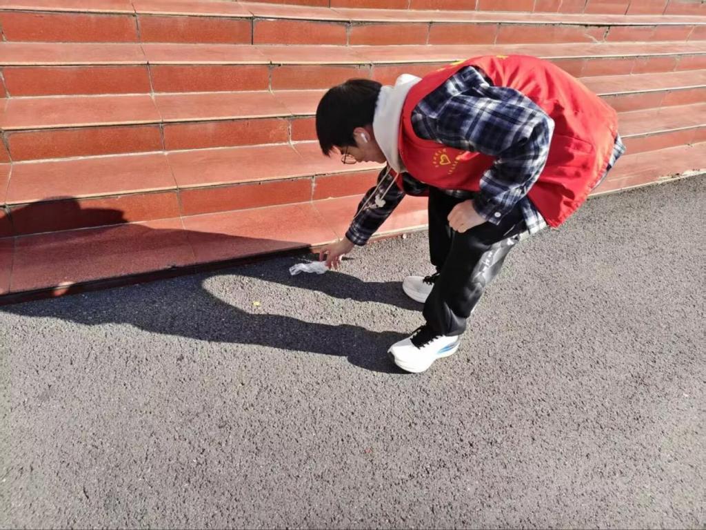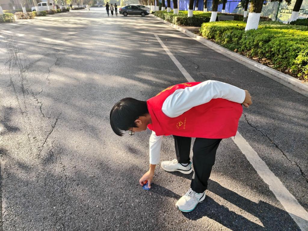 活动前期,学院志愿者负责人为参与同学明确了安全巡逻路线、卫生清理标准及隐患排查要点,确保活动有序高效开展。活动中,志愿者们分成多个小组,各司其职、协同配合。环境整治组沿着校园主干道、绿化带、人工湖周边、操场等区域逐一清理,用双手还原校园的洁净本色;安全巡逻组则沿着教学楼、学生宿舍区、食堂、图书馆等人员密集区域开展巡逻,耐心提醒过往同学注意出行安全。
