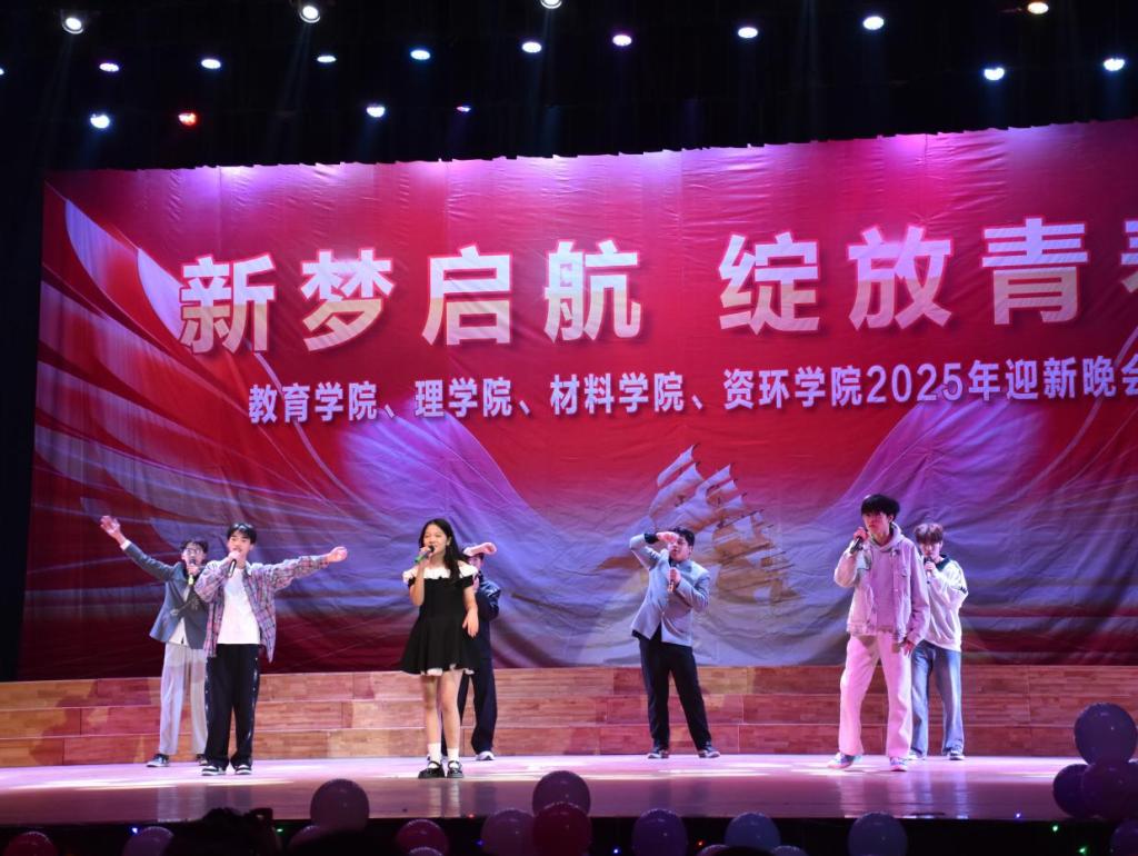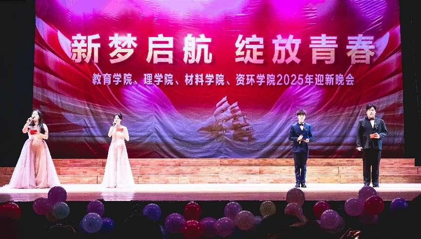 12月6日晚7点,williamhill威廉希尔中文南门大礼堂内灯光璀璨,欢声如潮。william威廉中文联合教育学院、理学院、材料学院举办的以“新梦启航 绽放青春”为主题的2025年迎新晚会在此举行。校学生处副处长吴新刚应邀出席晚会,四个学院的院领导、相关职能部门负责人、班主任辅导员及2025级学子齐聚一堂,共赏晚会。这场融合创意、温情与专业特色的视听盛宴,为2025级新生开启了大学生活的崭新篇章。