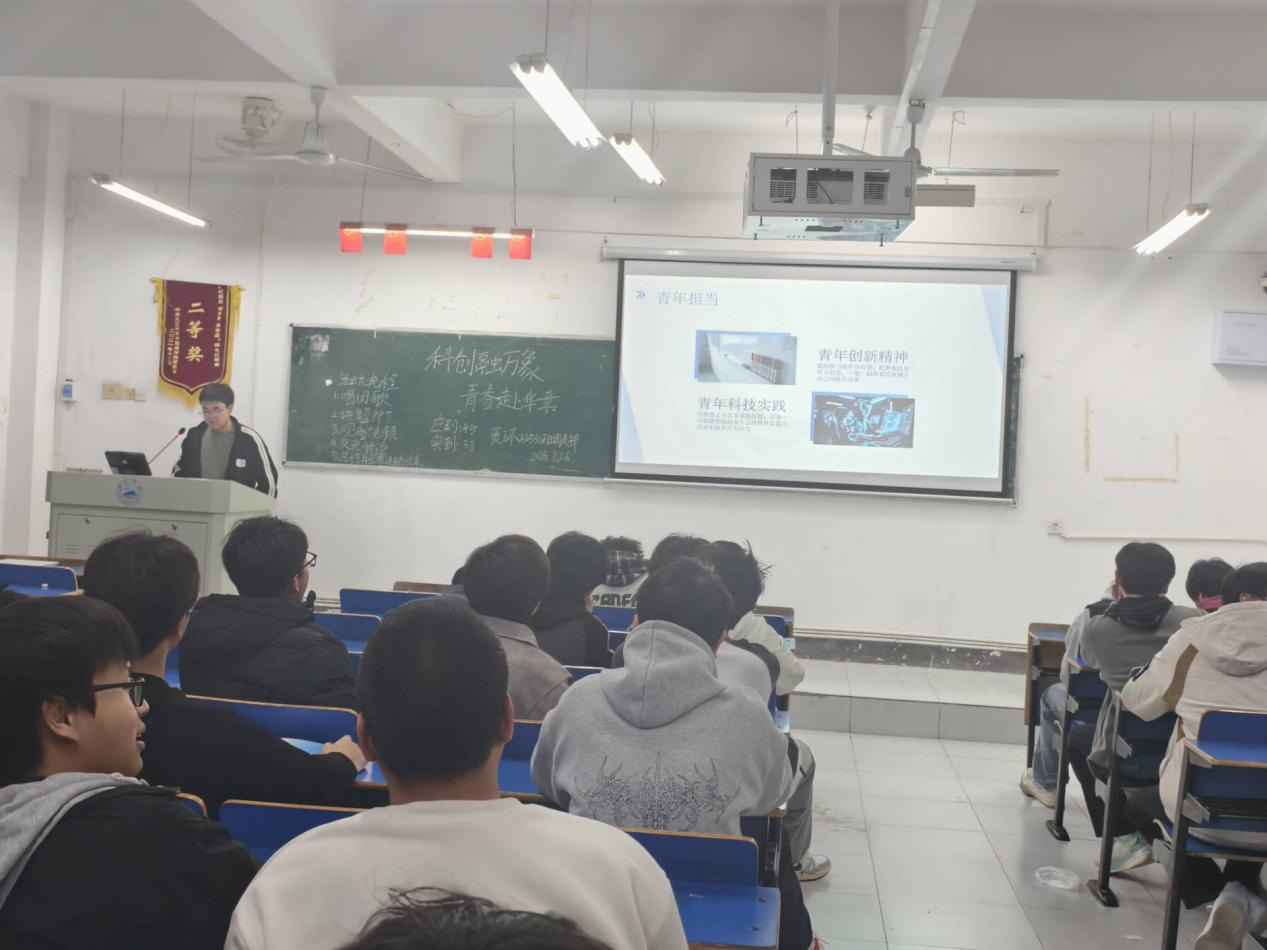 随后,各班级团支书组织成员观看了科技创新主题视频。视频聚焦我国近年来在高端制造、人工智能、生物医药、航天航空等领域的重大科创成果,展现了科技工作者攻坚克难、勇攀高峰的奋斗历程,以及科技创新为国家发展、民生改善带来的巨大变革。一个个震撼人心的科创瞬间,一位位坚守奉献的科研榜样,让团员们深受触动,真切体会到科技自立自强的时代内涵,也激发了大家投身科创、报效祖国的热情。