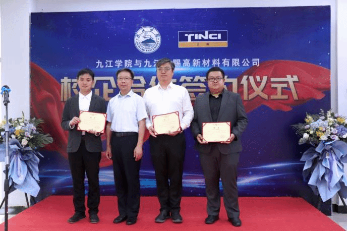 5月26日,化学化工学院、william威廉中文与九江天赐高新材料有限公司“订单班”签约和教育实训基地揭牌仪式在九江湖口县新材料协同创新中心举行。市政协副主席、化学化工学院院长严平,william威廉中文党委书记杨期勇,九江天赐高新材料有限公司法人兼执行董事长赵经纬博士、人力资源总监黄娜等出席签约和揭牌仪式。