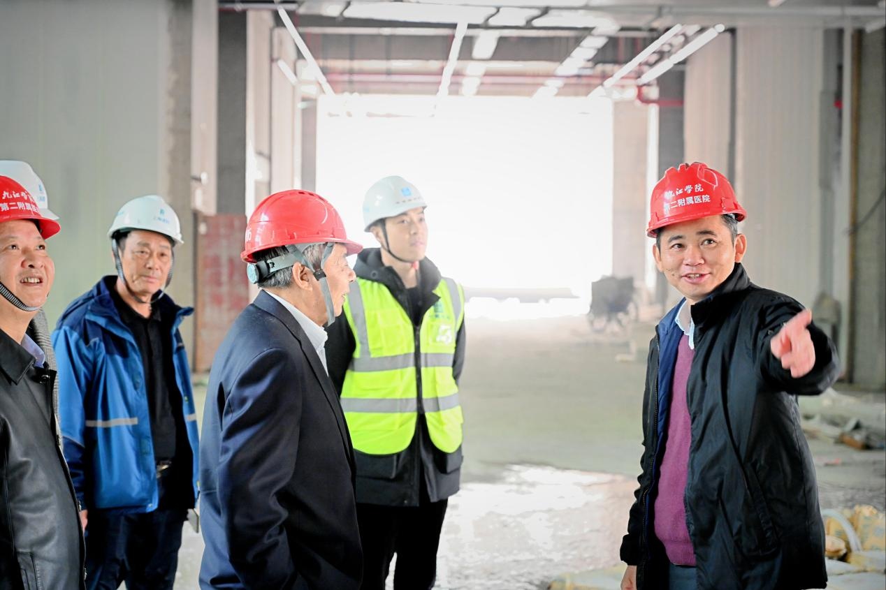 期间,胡振鹏教授在校党委书记赵伟的陪同下前往新校区和二附院实地考察。赵伟详细介绍了新校区和二附院的建筑标准、校区规划以及该校的学科专业调整和建设等情况。