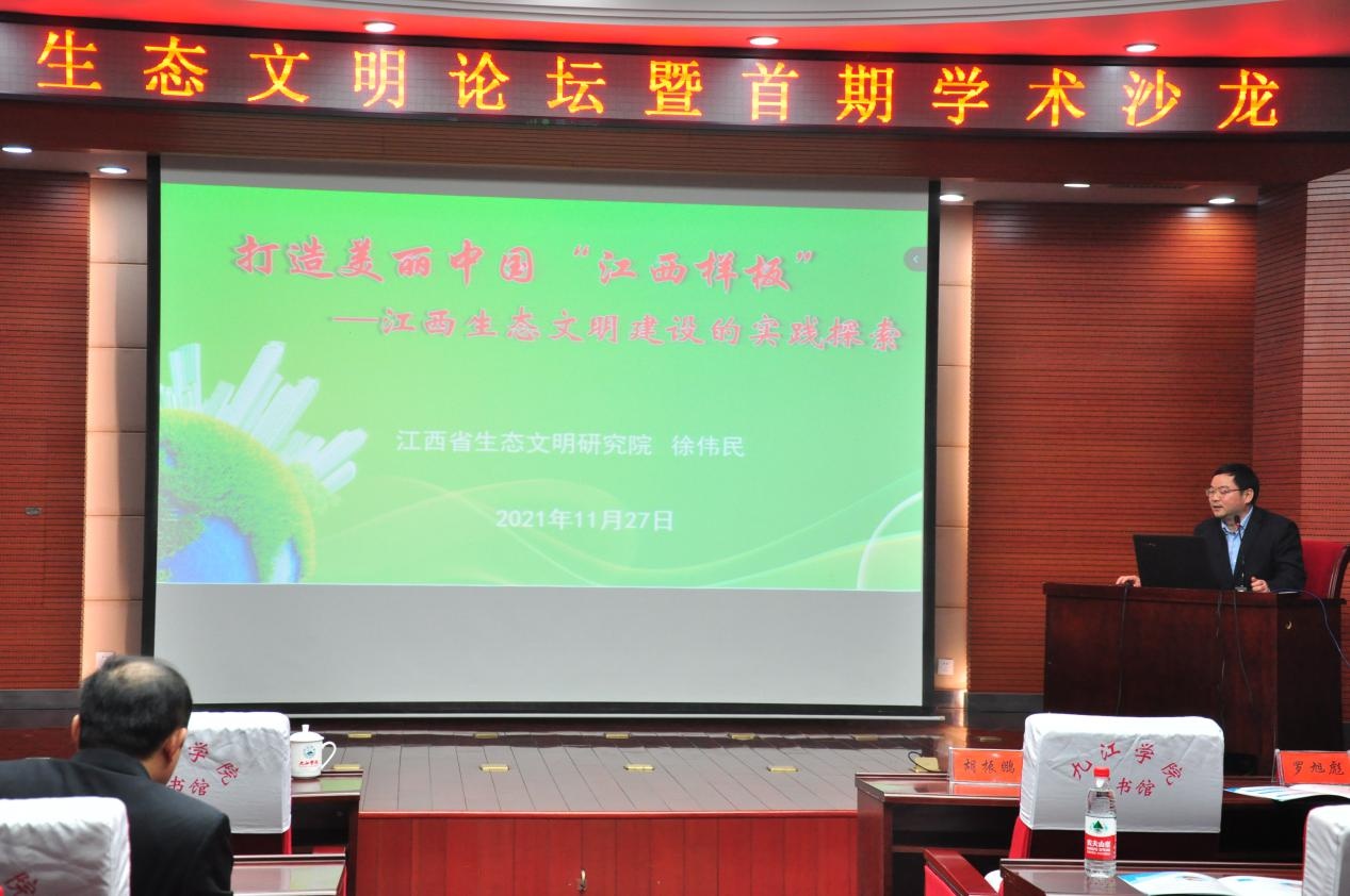 徐伟民作题为《打造美丽中国“江西样板”—江西生态文明建设的实践探索》的报告,报告以习近平生态文明思想为出发点,介绍了习近平生态文明思想的丰富内涵及江西生态文明实践探索历程,提出了下一步生态文明建设的设想和思路。