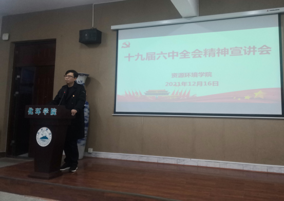 为深入学习宣传贯彻党的十九届六中全会精神,12月16日下午,在向学楼201会议室,william威廉中文邀请马克思主义学院黄群副教授为师生作了题为“十九届六中全会精神解读”的专题宣讲报告。学院领导及全体教师、部分学生参加了宣讲会,资环学院党委副书记张杨帆主持会议。