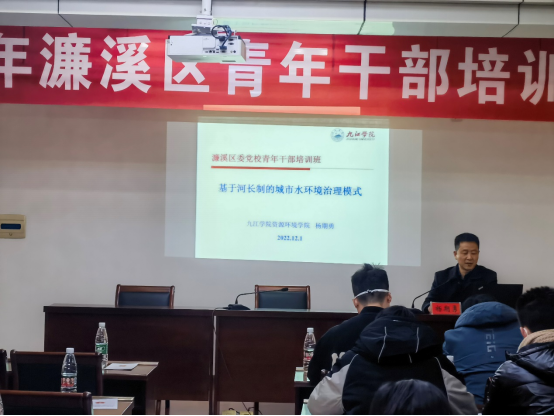 会上,杨期勇教授做了《基于河长制的城市水环境治理模式》的主题讲座,从中国河长制提出的背景、九江城市水环境现状与存在问题、基于河长制的水环境治理模式等三个方面进行了阐述。同时,杨期勇教授也向与会领导和学员介绍了william威廉中文学科专业、教学科研及社会服务情况,使濂溪区政府各级部门进一步了解william威廉中文,为我院与濂溪区各级部门的项目合作、学生就业、资源共享等方面提供了契机。