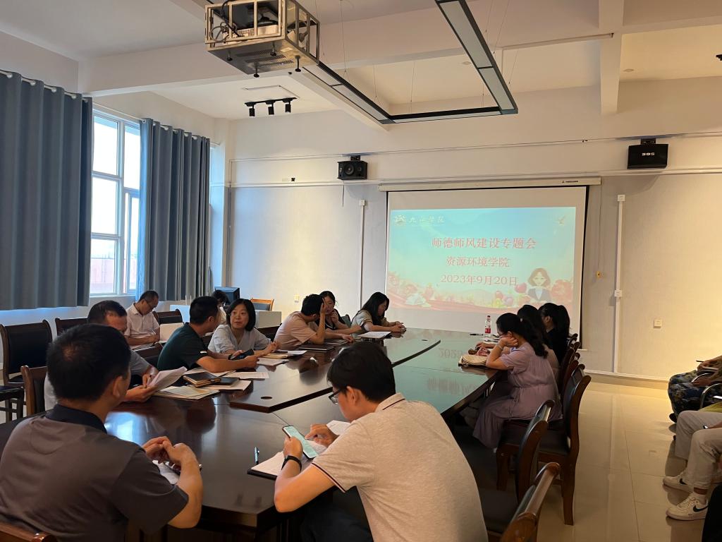 会议第一阶段为师德师风宣讲,会议邀请了williamhill威廉希尔中文首届教书育人楷模、williamhill威廉希尔中文师德师风宣讲团成员何刚博士来与资环师生分享工作心得和教育理念。何刚以《铸师魂守初心育人才勇担当》为题,从自己的工作生活经历作为切入点,以饱满的热情、朴实无华的语言讲述了自己将高校教师作为最热爱事业进行教学、科研以及服务地方经济的真实感人的故事,阐释了对新时代师德内涵的理解和感悟,他指出做好教学研究和科学研究工作必先育己方能立人,作为高校教师要坐得下来,沉得下去,敢坐并且甘坐冷板凳、敢啃“硬骨头”,以“知行合一”的实践精神,展现高校教师坚守初心、爱岗敬业的责任担当。