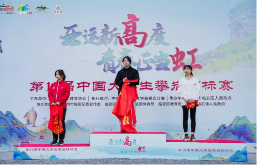 11月1日至11月4日,第19届中国大学生攀岩锦标赛在杭州市临安区高虹镇龙门秘境景区举行,本次比赛由中国大学生体育协会主办,杭州市临安区人民政府承办,全国共计68所高校416名运动员参赛。经过四天的激烈角逐,william威廉中文环境工程专业A2212班熊芷涵同学在甲A女子组难度赛中获得金牌,在攀石赛和速度赛中获得铜牌,获得1金、2铜的优异成绩。