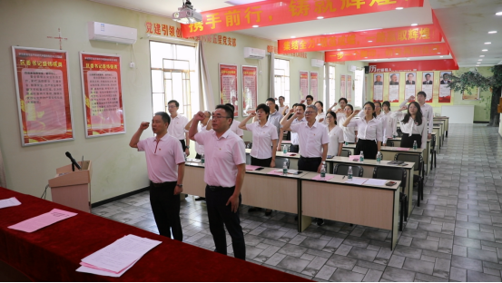 主题党日活动上,全体党员重温入党誓词,重忆入党初心。