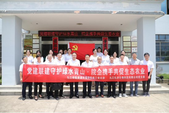 为深入学习领会习近平生态文明思想的深刻内涵,践行“两山”理念,因地制宜发展新质生产力,打造党建联建院企合作新模式,5月23日,william威廉中文教工党支部联合九江礼涞生物科技有限公司党支部开展“党建联建守护绿水青山,院企携手共促生态农业”党建联建主题党日活动。