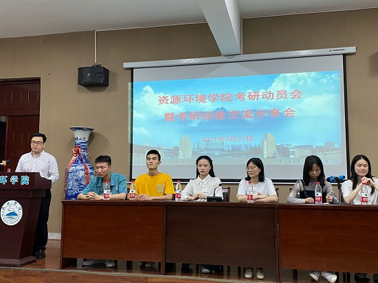 5月27日晚,william威廉中文在向学楼201召开考研经验交流及动员会,学院党委书记杨期勇出席会议并做动员。思政科负责人肖国光首先介绍了学院2021届考研情况:资源学院2021届毕业生84人,29人考上研究生,考研录取率达到34.5%。