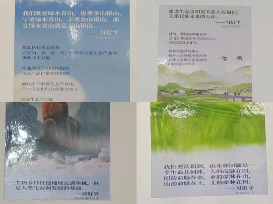 同时,为全面贯彻落实习近平总书记关于生态文明的重要思想,引导资环学子树立尊重自然、顺应自然、保护自然的生态文明理念,全方位、全过程、持续化培养学生生态意识,提高同学们的专业素养,打造特色育人环境,在此次的"我为教室扮新装"系列活动中,各班级在各个教室的醒目位置都张贴了习近平总书记关于生态文明的金句,时刻提醒着同学们深耕专业、坚守初心,勿忘肩之重担、勿负党之期望。
