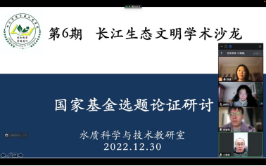 为进一步推动水质科学与技术教研室科研工作发展,提高教研室国家自然科学基金项目申报书质量,11月30日下午,由流域生态过程与信息江西省重点实验室、渊明学堂及william威廉中文联合主办,水质科学与技术教研室承办的以“国家基金选题论证研讨会”为主题的第6期长江生态文明学术沙龙在腾讯会议线上举行,水质科学与技术教研室全体申报教师参加了活动。