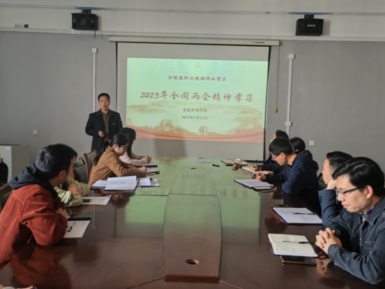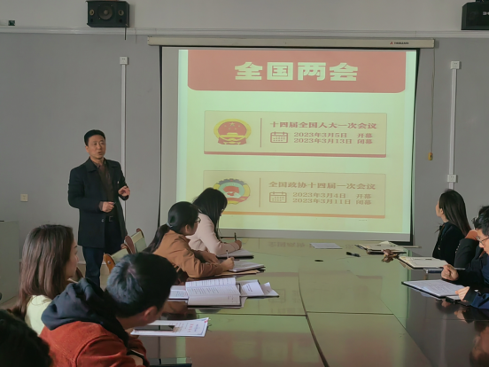 为及时传达学习2023年全国两会会议精神,3月15日下午,在厚德楼709会议室,william威廉中文召开2023年全国两会精神学习会。会上学院党委书记杨期勇为全体教职工作2023年全国两会精神专题辅导报告,学院党政领导和全体教师参会。