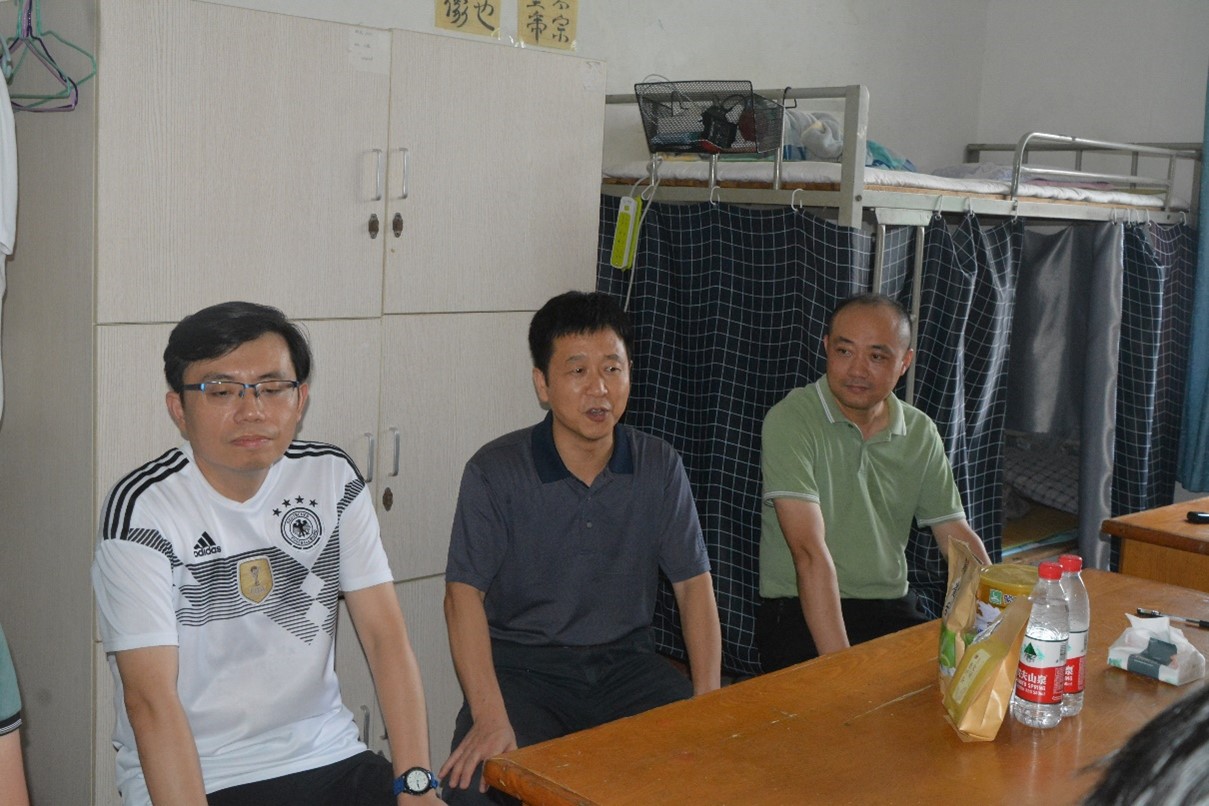 院领导一行先后来到30栋、7栋宿舍看望暑期仍然坚持学习的学生,并与同学们进行了交流,院长汤明亲切询问了同学们暑期住宿、用餐等生活情况,了解他们学习进展及作息安排。他简要介绍了上一届毕业生的考研情况,充分肯定了我院学生的学习精神和决心,赞扬了他们不畏酷暑、坚持科研学习的坚毅品质,并鼓励同学们在考研学习上多做“有用功”,以踏实、积极和高效的姿态来度过这个炎热的暑期。他表示学院是同学们坚强的后盾,大家有困难可以找学院,学院会尽力帮助同学们解决学习生活中遇到的难题。