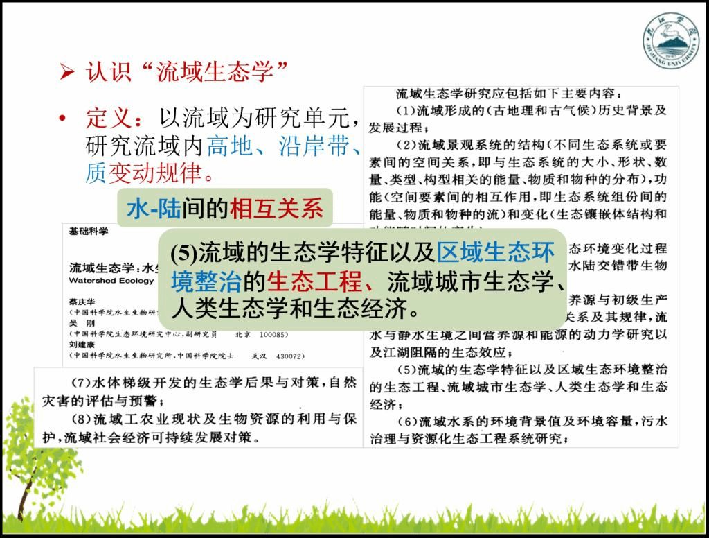 2.通过流域生态学的研究案例让学生真切体会到流域尺度研究的重要意义和价值。(专业价值)